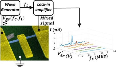 Scanning electron microscope of the inorganic nanotube-based self-sensing torsional resonator (left). The inertial sensor is actuated by applying voltage between the substrate and the offset pedal, which is attached to the nanotube. Piezoresistive enables direct electrical detection of the resonance spectrum (right)