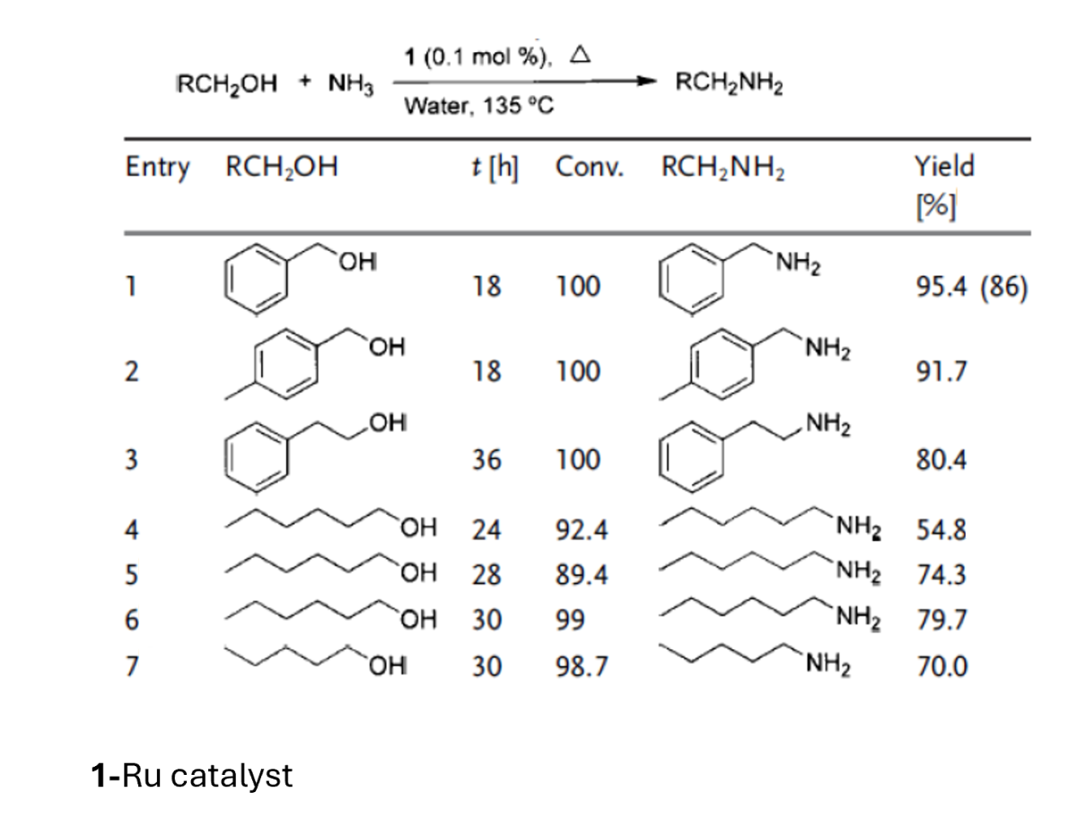 Current methods for synthesizing primary amines require high energy input, toxic reagents, and result in undesired byproducts. This technology offers a direct, single-step catalytic process using alcohols and ammonia under mild conditions. Catalyzed by a novel Pincer-type Ruthenium complexes, it enables efficient and selective production of primary amines while minimizing waste and reducing production costs.